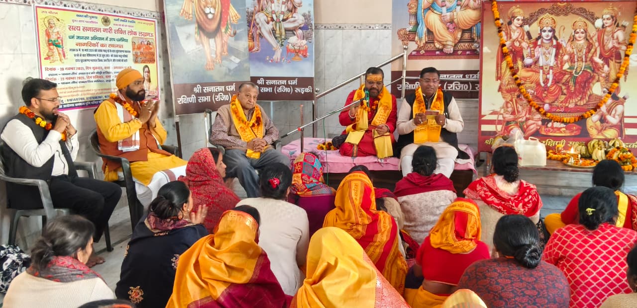 रुड़की।सत्य सनातन नारी शक्ति, लखनऊ द्वारा रविवार को रुड़की स्थित प्राचीन एवं प्रसिद्ध सिद्धेश्वर महादेव मंदिर में राष्ट्र कल्याण, धर्म उत्थान और जनकल्याण की भावना से युक्त सुंदरकांड पाठ, महायज्ञ और हनुमान चालीसा का भव्य आयोजन किया गया। कार्यक्रम में रुड़की और आसपास के क्षेत्रों से सैकड़ों नारी शक्ति ने उत्साहपूर्वक भाग लिया और हिंदू राष्ट्र व सनातन धर्म की रक्षा का संकल्प लिया।कार्यक्रम के मुख्य अतिथि गुरुदेव आचार्य रमेश महाराज जी ने कहा कि युवा शक्ति और नारी शक्ति का एक साथ आकर सनातन को जागृत करने का यह अभियान अत्यंत श्रेष्ठ है। उन्होंने कहा कि सुंदरकांड महाअभियान राष्ट्र की आध्यात्मिक ऊर्जा को बढ़ाने वाला प्रयास है, जिससे भगवान श्रीराम की शक्ति जागृत होगी और राम पुनः प्रकट होकर राष्ट्र का कल्याण करेंगे।