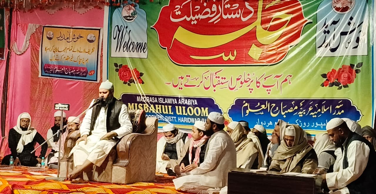 रुड़की।मदरसा मिसबाह उल उलूम रामपुर में हुए सालाना जलसा एवं दस्तारबंदी कार्यक्रम में आलिमों द्वारा अल्लाह के हुक्म और नबी के तरीके पर जिंदगी गुजारने पर जोर दिया गया।मौलाना हुसैन अहमद ने कुरान और हदीस की रोशनी बयां करते हुए कहा कि अल्लाह और उसके प्यारे नबी के बताए गए रास्ते पर चलकर जिंदगी गुजारोगे तो दुनिया के साथ ही तुम्हारी आखिरत भी आसान हो जाएगी।मौलाना हुसैन अहमद ने आगे कहा कि आज मुसलमान दीन के रास्ते से भटक गया है,इसलिए तमाम परेशानियां उनका पीछा कर रही है।आज हमारे बच्चे बुजुर्गों की इज्जत नहीं करते और औरतें भी पर्दा हो गई है।उन्होंने सभी से दीन के रास्ते पर चलकर अपनी जिंदगी को बसर करने की बात कही और कहा कि तालीम के बिना इंसान का जीवन बेकार है।दीन और दुनिया की तालीम हासिल कर तरक्की की राह में आगे बढ़े।एक छोटा बच्चा बचपन से ही जब पढ़े लिखे माहौल में रहेगा तो बड़ा होकर भी वह अच्छा इंसान बनेगा।उन्होंने उलमाओं की सोहबत में रहने तथा उनसे सबक हासिल करने और उनकी इज्जत व एहतराम करने पर जोर दिया,साथ ही उन्होंने कहा कि निकाह को आसान कर दहेज प्रथा,फिजूल खर्ची,वीडियो ग्राफी,नशाखोरी,सूदखोरी आदि से दूर रहकर सुन्नत तरीके से निकाह करें।मुफ्ती अब्दुल शमी,मौलाना सलमान तथा मुफ्ती रियासत अली ने भी दीन और दुनियावी तालीम को हासिल करने पर जोर दिया।इस दौरान उन्होंने मदरसे के तीन बच्चों को कुरान हिफ्ज किए जाने पर दस्तार बंदी कर उन्हें बधाई दी।जलसे का आगाज नाते पाक से हुआ तथा जलसे के अंत में मुल्क और सुबे की की तरक्की व अमनों-सलामती के साथ कौम को तरक्की की राह में आगे बढ़ने की दुआ कराई।इस मौके पर मौलाना मुसर्रत अली,मोहम्मद शहजाद,कारी मोहम्मद मोहसिन,हाफिज मोहम्मद शाहिद,हाफिज मोहम्मद वसीम,मौलाना अब्दुल रहीम,मोहम्मद शाहिद,मौलाना फुरकान अहमद,डॉक्टर खुर्शीद,डॉक्टर अफजल,हाफिज मोहम्मद शमी आदि प्रमुख रूप से लोग मौजूद रहे।