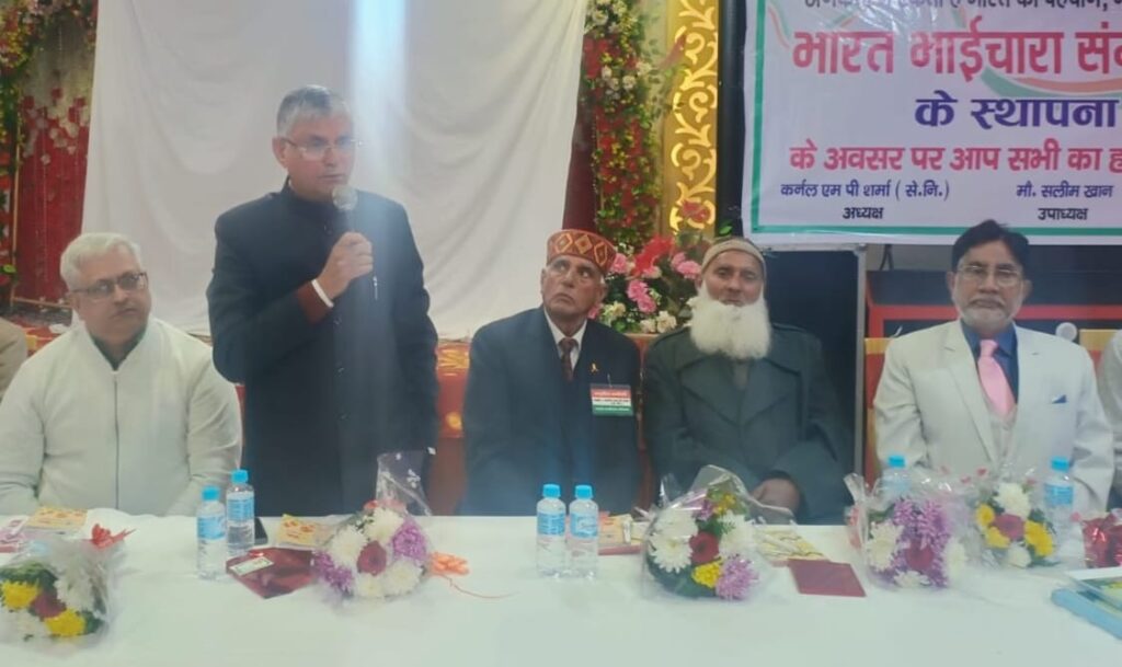 हरिद्वार/रूड़की,11 दिसंबर 2025।भारत भाईचारा संगठन के दूसरे स्थापना दिवस पर भाईचारा बढ़ाने तथा मिलकर काम करने के उद्देश्य से ईदगाह चौराहा स्थित सचिन इंटरनेशनल होटल में कार्यक्रम का आयोजन किया गया,जिसमें संगठन के अध्यक्ष सेवानिवृत्त कर्नल एमपी शर्मा की भारत भाईचारा पुस्तक का विमोचन भी किया गया।कार्यक्रम में मुख्य अतिथि के रूप में पहुंचे सेवानिवृत न्यायमूर्ति लोकपाल सिंह,विशिष्ट अतिथि प्रोफेसर नवनीत अरोरा ने पुस्तक का विमोचन किया।विमोचन करते हुए मुख्य अतिथि ने कहा कि भाईचारा और सौहार्द को कायम रखने के लिए सभी को मिलकर कार्य करना चाहिए।भाईचारे और सोहार्द से ही सभ्य समाज का निर्माण होता है।विशिष्ट अतिथि ने कहा कि सामाजिक एकता के लिए सभी को मिलजुल प्रयास करने चाहिए।कांग्रेस के प्रदेश महामंत्री सचिन गुप्ता ने कहा कि बीमारी के दौरान खून लेते समय रक्तदाता का कोई धर्म नहीं देखता,इसलिए सभी को मतभेद दूर कर सौहार्द बढ़ाने के लिए काम करना चाहिए।संगठन के अध्यक्ष सेवानिवृत्त कर्नल एमपी शर्मा ने कहा कि मजबूत राष्ट्र के लिए पहले उसके लोगों में भाईचारे की भावना होना अति आवश्यक है।उन्होंने सभी धर्मों के लोगों से अपने बच्चों को शिक्षा के साथ-साथ अच्छे संस्कार दिलाने के लिए प्रेरित किया तथा इस संगठन में महिलाओं को जोड़ने की बात कही।इस मौके पर समाजसेवी हाजी सलीम खान,मौलाना अरशद कासमी ने कहा कि आपस में नफरत को दूर कर प्रेम और भाईचारे को बढ़ावा देना होगा तभी हमारे देश की एकता एवं अखंडता और अधिक मजबूत होगी।कर्नल एमपी शर्मा ने अपनी पुस्तक के बारे में भी लोगों को विस्तृत रूप से जानकारी दी।कार्यक्रम का संचालन विनोद मिश्रा ने किया।इस मौके पर वरिष्ठ समाजसेवी डॉक्टर असलम खान,मोहम्मद ताहिर,श्रीगोपाल नारसन, वरिष्ठ समाजसेविका पूजा गुप्ता,दिलशाद उर्फ गुड्डू,डॉ०सागर,रऊफ खान,कलीम खान,मोहम्मद समीर, मोहम्मद कुददुस अंसारी आदि अनेक लोग मौजूद रहे। इस मौके पर नफीसुल हसन ने देशभक्ति गीत सुनाया।