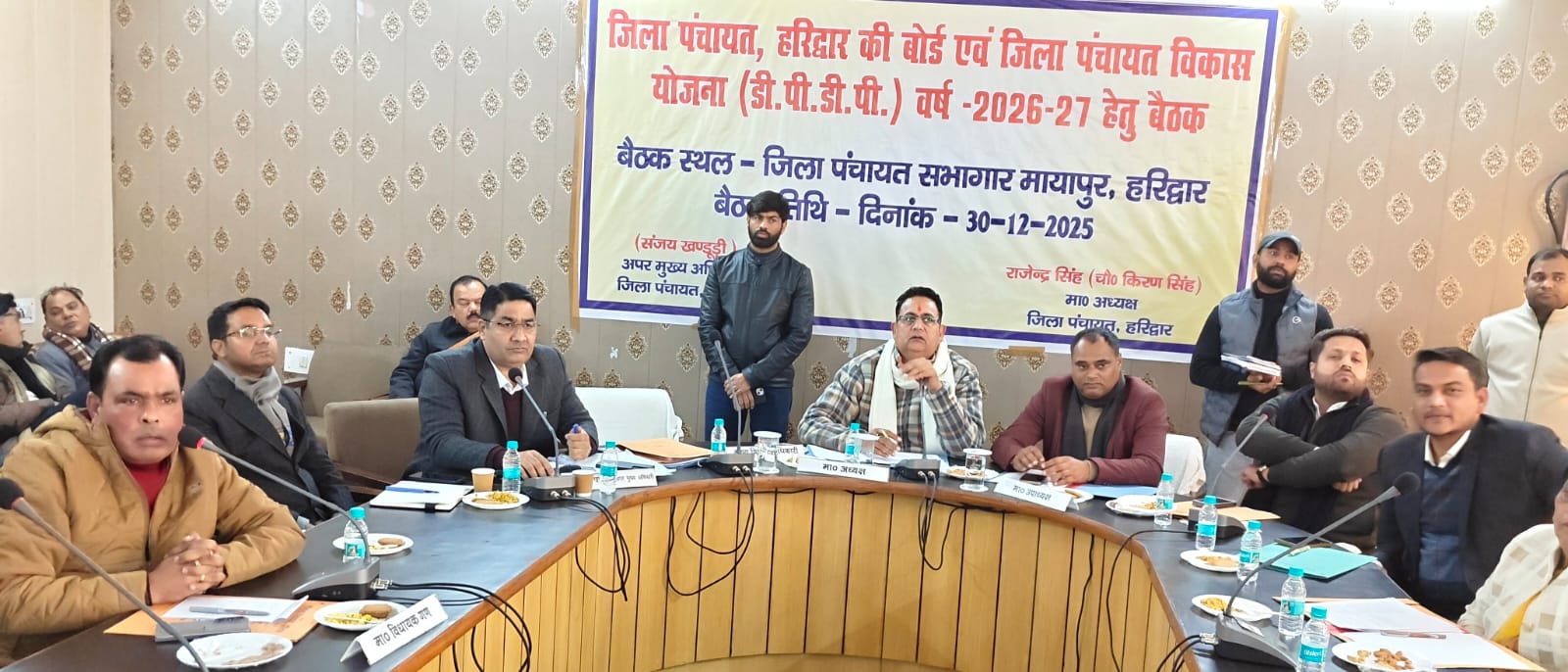 हरिद्वार, 30 दिसम्बर। जिला पंचायत की बोर्ड एवं जिला पंचायत विकास योजना डीपीडीपी वर्ष 2026-27 की बैठक जिला पंचायत सभागार मायापुर में आयोजित की गई। जिला पंचायत अध्यक्ष राजेंद्र सिंह (चौधरी किरण सिंह) की अध्यक्षता में आयोजित बैठक में अपर मुख्य अधिकारी संजय खंडूरी सहित तमाम जिला पंचायत सदस्य मौजूद रहे। बैठक में जिला पंचायत सदस्यों ने ग्रामीण क्षेत्र की समस्याओं को प्रमुखता से रखा। बिजली कनेक्शन, सड़क निर्माण, हैंड पंप, साफ सफाई आदि समस्याओं से बोर्ड को अगवत कराया। जिला पंचायत अध्यक्ष राजेंद्र सिंह चौधरी किरण सिंह ने बताया कि बैठक में मुख्य रूप से नए प्रस्तावों के साथ पुराने कार्यों पर भी बिंदुवार चर्चा की गई है। सदस्यों ने विकास योजनाओं पर चर्चा की। विकास कार्यो के लिए सदस्यों से प्रस्ताव मांगे गए हैं। वित्तीय वर्ष के कार्यों पर भी विशेष चर्चा की गयी। उन्होंने कहा कि गांवों के विकास के साथ सड़क, नालीयां, सफाई व्यवस्था, तालाबों की सफाई का काम एवं सड़क किनारे वृक्षारोपण जैसे कार्यों को प्रमुखता दी जाएगी। उन्होंने बताया कि बच्चों के लिए ग्रामीण क्षेत्रों में लाइब्रेरी का निर्माण किया जाएगा। अनुसूचित जाति समाज के लिए अंतिम संस्कार करने के बाद तीसरा चौथा करने की व्यवस्था के लिए जंगल में नहाने के लिए ट्यूबवेल, चेंजिंग रूम बनाए जाएंगे। जिससे अनुसूचित जाति समाज भी सम्मान पूर्वक अंतिम संस्कार की प्रक्रिया को पूरा कर सके। राजेंद्र सिंह (चौधरी किरण सिंह) ने कहा कि आज के परिवेश में लोग शहरों से गांव की ओर जा रहे हैं। अंतिम छोर के व्यक्ति तक विकास पहुंचना ही हमारा लक्ष्य है। लोगों की सुविधा के लिए सरकार जन-जन के द्वार जैसे कार्यक्रम भी चला रही है। इस दौरान संबंधित विभागों के अधिकारी मौजूद रहे।