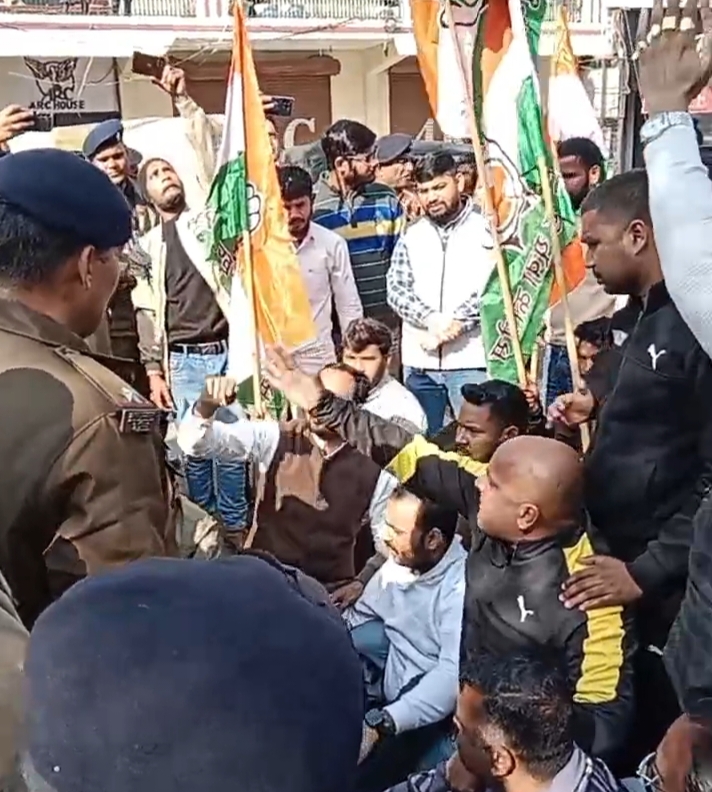 कांग्रेस कार्यकर्ता प्रेमनगर गेट के सामने एकत्र हुए और खन्ना नगर स्थित विधायक के कार्यालय की ओर बढ़े। खन्ना नगर से कुछ दूरी पहले पुलिस ने बैरिकेडिंग कर उन्हें आगे बढ़ने से रोक दिया। पुलिस द्वारा रोके जाने पर कार्यकर्ता सड़क पर बैठ गए और जमकर नारेबाजी करते हुए प्रदर्शन करने लगे। स्थिति को देखते हुए पुलिस ने प्रदर्शनकारियों को गिरफ्तार कर लिया।