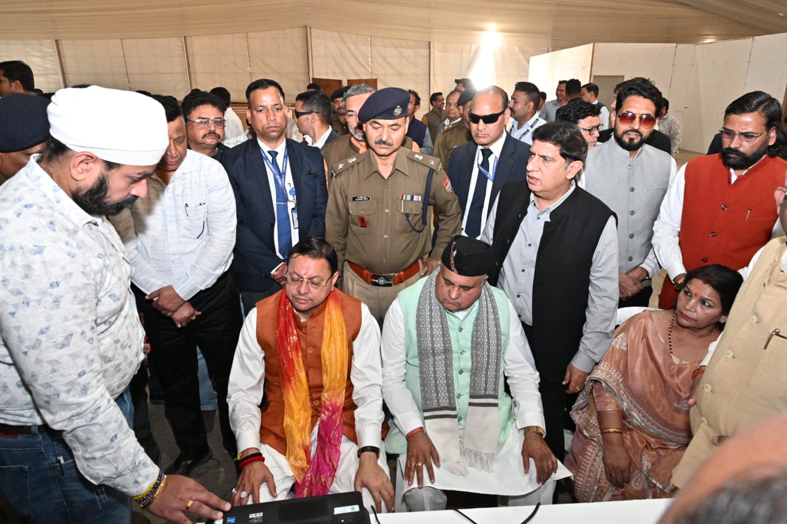 निरीक्षण के दौरान राज्यसभा सांसद एवं भाजपा के प्रदेश अध्यक्ष महेंद्र भट्ट, जिला पंचायत अध्यक्ष किरन चौधरी, मेयर हरिद्वार किरन जैसल, विधायक मदन कौशिक, आदेश चौहान, प्रदीप बत्रा, दायित्वधारी राज्य मंत्री अजीत चौधरी, जयपाल सिंह चौहान, देशराज कर्णवाल, सोभाराम प्रजापति, प्रदेश महासचिव अनिल गोयल, प्रदेश महामंत्री (संगठन) अजय कुमार, भाजपा जिलाध्यक्ष आशुतोष शर्मा, पुलिस महानिरीक्षक गढ़वाल राजीव स्वरूप, एडीजी अजय प्रकाश अंशुमन, महानिदेशक सूचना बंशीधर तिवारी, एमडी शिडकुल सौरव गैहरवार, पुलिस अधीक्षक अभिसूचना मणिकांत मिश्रा, मुख्य विकास अधिकारी ललित नारायण मिश्रा, अपर जिलाधिकारी पीआर चौहान, अपर मेलाधिकारी दयानंद सरस्वती, सचिव एचआरडीए मनीष कुमार, उपजिलाधिकारी जितेन्द्र कुमार, एसपी सीटी अभयप्रताप सिंह, सीओ सीटी शिशुपाल सिंह नेगी सहित सम्बन्धित अधिकारी एवं जनप्रतिनिधि मौजूद रहें।