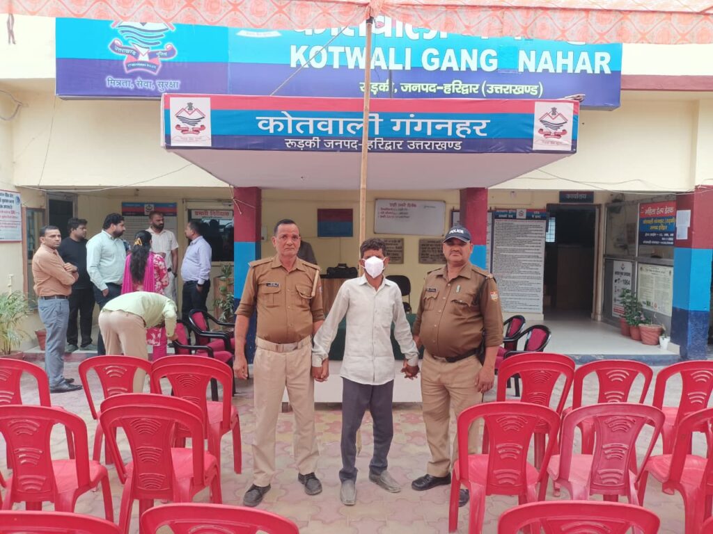 पुलिस द्वारा लगातार दबिश और तलाश के बाद दिनांक 18/03/2026 को मुखबिर की सूचना पर फरार वांछित आरोपी गयूर पुत्र हसन निवासी ग्राम माधोपुर, रुड़की (उम्र 50 वर्ष) को नहर पटरी कब्रिस्तान के पास से गिरफ्तार कर लिया गया।