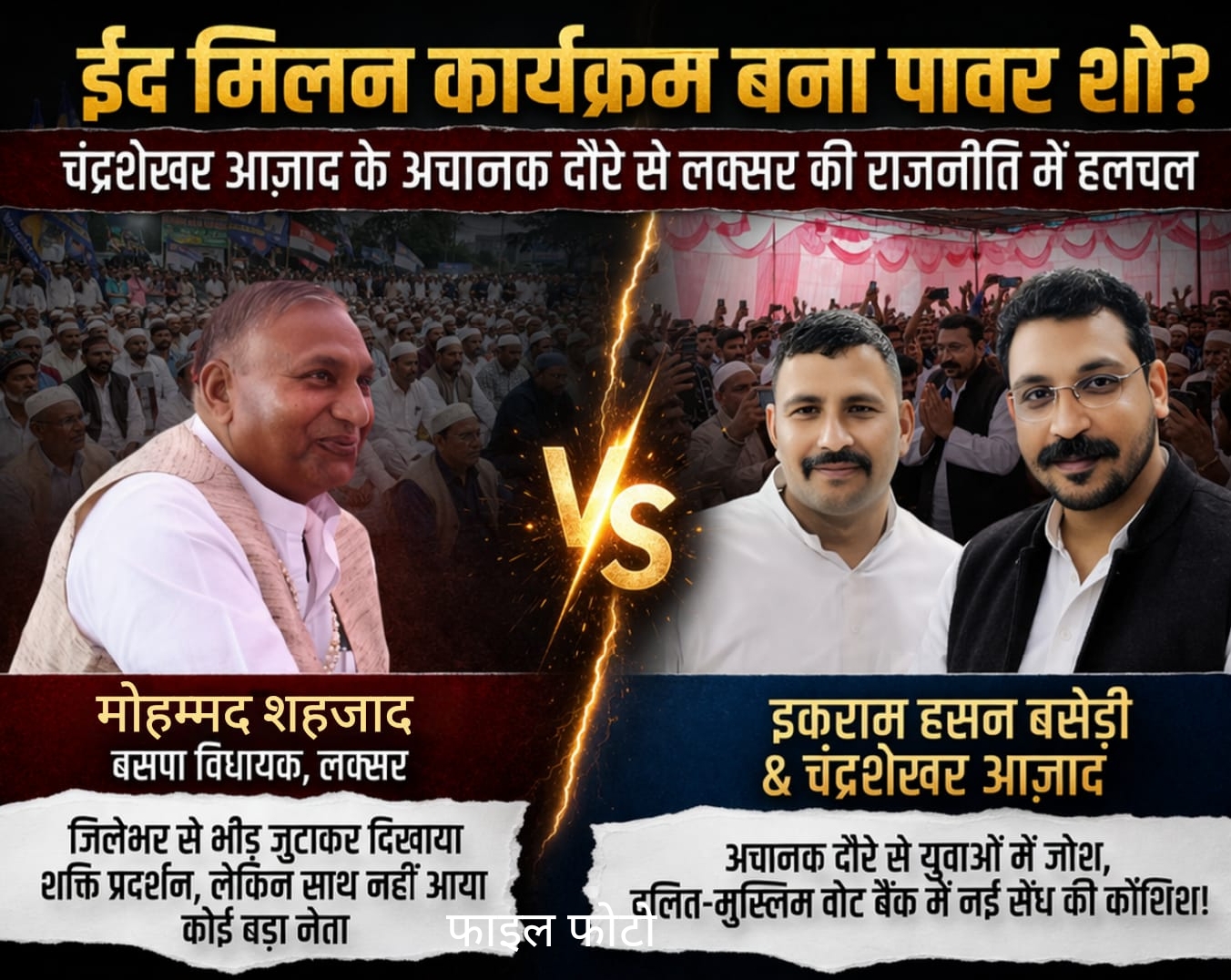 एक साधारण दिखने वाला ईद मिलन कार्यक्रम इस बार लक्सर की राजनीति में बड़ा संदेश देकर गया है। जहां एक ओर पारंपरिक दल अपने जनाधार को बनाए रखने में जुटे हैं, वहीं सांसद चंद्रशेखर आज़ाद की सक्रियता ने मुकाबले को और दिलचस्प बना दिया है। अब सबकी नजरें 2027 के चुनाव पर टिकी हैं-जहां तय होगा कि असली “गेम चेंजर” कौन बनता है।