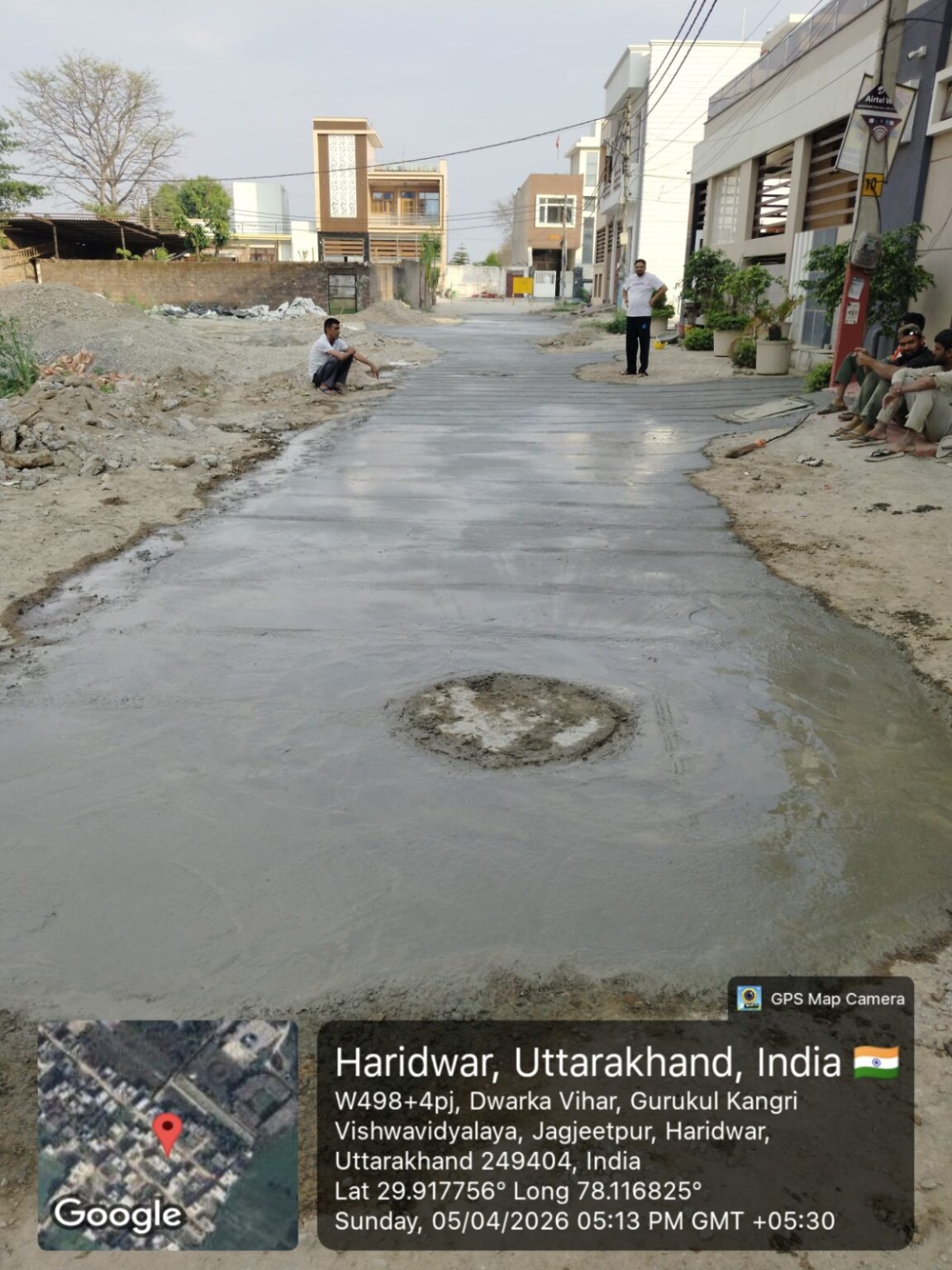 परियोजना प्रबंधक निर्माण एवं अनुरक्षण इकाई गंगा उत्तराखंड पेयजल निगम मिनाक्षी मित्तल ने अवगत कराया है कि जिलाधिकारी के निर्देशों के अनुपालन में केएफडब्लयू वित्त पोषित हरिद्वार जलोत्सारण योजना पैकेज 01 एवं पैकेज 02 के अंतर्गत कराए जा रहे सड़क पुनर्निर्माण संबंधी कार्य जिसके तहत 04 अप्रैल एवं 05 अप्रैल तक किए गए निर्माण कार्यों का विवरण निम्नवत है जिसमें- पैकेज 01 में मोती बाजार सीसी रोड निर्माण कार्य 110 मीटर, मुख्य गली सीसी रोड निर्माण कार्य 10 मीटर , पीपल वाली गली सीसी रोड 08 मीटर कार्य पूर्ण कर लिया गया है। तथा पैकेज 02 के अंतर्गत द्वारिका विहार में सीसी रोड निर्माण कार्य 44 मीटर, नियर राजा गार्डन सीसी रोड 38 मीटर, राजविहार फेस–2 पेवर ब्लॉक का कार्य 37 मीटर, लोक सेवा आयोग सीसी रोड 68 मीटर निर्माण कार्य पूर्ण कर लिया गया है