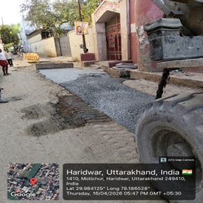 परियोजना प्रबंधक निर्माण एवं अनुरक्षण इकाई गंगा उत्तराखंड पेयजल निगम मिनाक्षी मित्तल ने अवगत कराया है कि जिलाधिकारी के निर्देशों के अनुपालन में केएफडब्लयू वित्त पोषित हरिद्वार जलोत्सारण योजना पैकेज 01 एवं पैकेज 02 के अंतर्गत कराए जा रहे सड़क पुनर्निर्माण संबंधी कार्य जिसके तहत 16 अप्रैल को किए गए निर्माण कार्यों का विवरण निम्नवत है जिसमें- पैकेज 01 में आहलुवालिया हॉस्पिटल सीसी रोड 40 मीटर,पीपल वाली गली सीसी रोड 78 मीटर,शांति मार्ग टाइल्स रोड 20 मीटर, प्रेम विहार चौक सीसी रोड 45 मीटर कार्य पूर्ण कर लिया गया है तथा कुल 183 मीटर कार्य पूर्ण कर लिया गया है। तथा पैकेज 02 के अंतर्गत राज विहार फेस 2 पावर ब्लॉक 14 मीटर, गणपति विहार सीसी रोड 80 मीटर,पीर कॉलोनी पावर ब्लॉक 18 मीटर,मोहन इंक्लेव सीसी रोड 25 मीटर, गणपतिधाम फेस 3 पावर ब्लॉक 15 मीटर कार्य पूर्ण करते हुए कुल 152 मीटर निर्माण कार्य पूर्ण कर लिया गया है ।