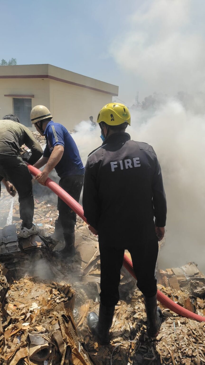 हरिद्वार।फायर स्टेशन रुड़की । समय: 11:30 बजे फायर स्टेशन रुड़की को प्राप्त सूचना के आधार पर फायर यूनिट रुड़की तत्काल घटनास्थल के लिए रवाना हुई। मौके पर पहुंचकर सागर पेपर मिल में वेस्ट पेपर में लगी आग को फैलने से रोकते हुए मोटर फायर इंजनों से होज पाइप बिछाकर पंपिंग के माध्यम से कड़ी मेहनत के बाद आग पर पूर्ण रूप से काबू पा लिया गया।