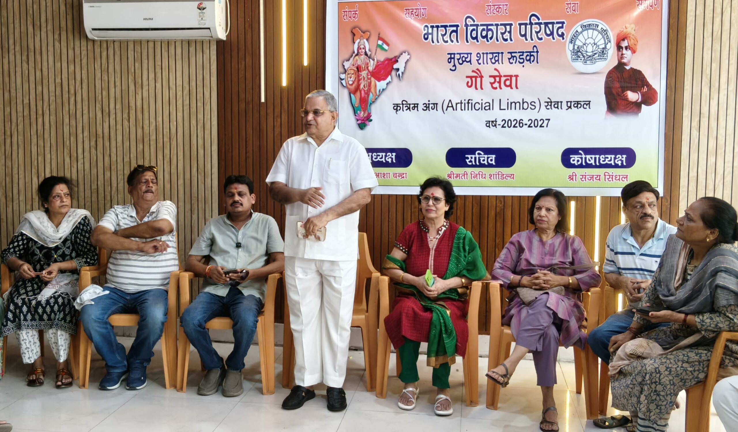 रुड़की।भारत विकास परिषद,शाखा रुड़की द्वारा आज से सेवा प्रकल्प का शुभारंभ किया गया।आगामी तीन माह तक चलने वाले इस कार्यक्रम के शुभारंभ से पूर्व संस्था के पदाधिकारियों ने गौशाला में पहुंचकर गौ सेवा की।इस दौरान गौ पूजन किया गया तथा गौ माता को चारा अर्पित किया गया।संस्था के पदाधिकारियों ने गौशाला सभागार में प्रेसवार्ता कर जानकारी देते हुए बताया कि इस प्रकल्प के माध्यम से आर्थिक रूप से कमजोर एवं जरूरतमंद दिव्यांगों को निशुल्क कृत्रिम अंक उपलब्ध कराए जाएंगे,जिससे वह आत्मनिर्भर बन सके तथा सम्मान पूर्वक अपना जीवन यापन कर सके।संस्था की अध्यक्ष आशा चंद्रा ने परिषद के आगामी सेवा प्रकल्पों की जानकारी देते हुए कहा कि कृत्रिम अंग सेवा प्रकल्प शीघ्र ही व्यापक स्तर पर संचालित किया जाएगा।संयोजक सचिन गुप्ता ने इस योजना के उद्देश्य,प्रकिया एवं लाभार्थियों के चयन संबंधी जानकारी विस्तार पूर्वक दी।वरिष्ठ समाजसेविका पूजा गुप्ता ने बताया कि कोई भी इच्छुक एवं पात्र लाभार्थी संस्था के सदस्यों से संपर्क कर सकते हैं तथा अपनी दो फोटो,आधार कार्ड की प्रति एवं दिव्यांगता प्रमाण पत्र जमा कर निशुल्क कृत्रिम अंक प्राप्त कर सकते हैं।सत्येंद्र गुप्ता ने बताया कि भारत विकास परिषद अनेक वर्षों से समाज सेवा का कार्य निरंतर करती आ रही है,जिसमें स्वास्थ्य शिविर,कृत्रिम अंग वितरण तथा अन्य सामाजिक कार्य प्रमुख रूप से किए जाते रहे हैं।संस्था की सचिव निधि शांडिल्य ने लाभार्थियों के आवेदन हेतु संस्था के अशोक गुप्ता,इंदु रावल,वीणा जैन तथा कमलेश अग्रवाल से संपर्क कर पंजीकरण करवा सकते हैं,जिसके लिए उन्होंने निम्न मोबाइल नंबर-9411100380,9997841319 भी जारी किए।प्रेसवार्ता में अजय सिंघल,शशिकांत अग्रवाल,सौरभ सिंघल,सावित्री मंगला,पारुल गोयल,कमलेश अग्रवाल,इंदू रावल,वीणा जैन,प्रमोद गोयल,ललिन तायल,मयंक गुप्ता,संजय सिंघल,आराध्या गोयल,अनिल जैन,संदीप गुप्ता आदि प्रमुख रूप से मौजूद रहे।